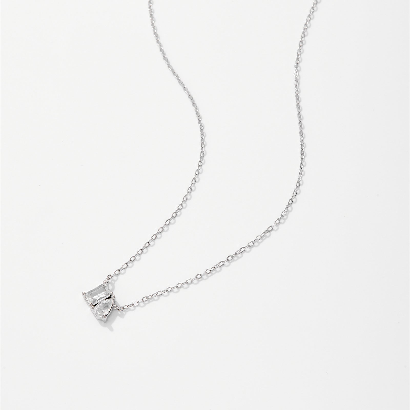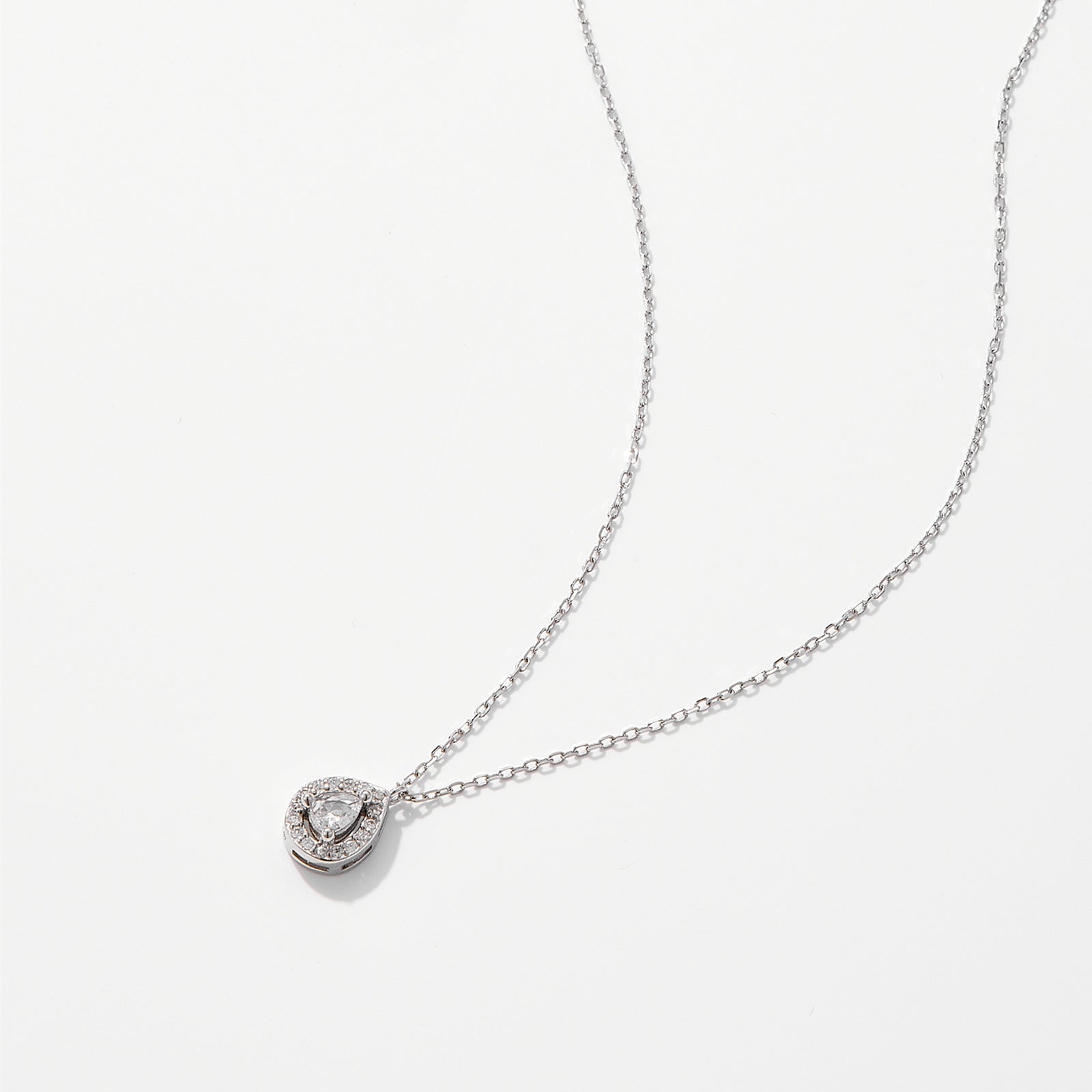 925Silver Sparkling Round Teardrop Pear Shaped Zircon Pendant Necklace