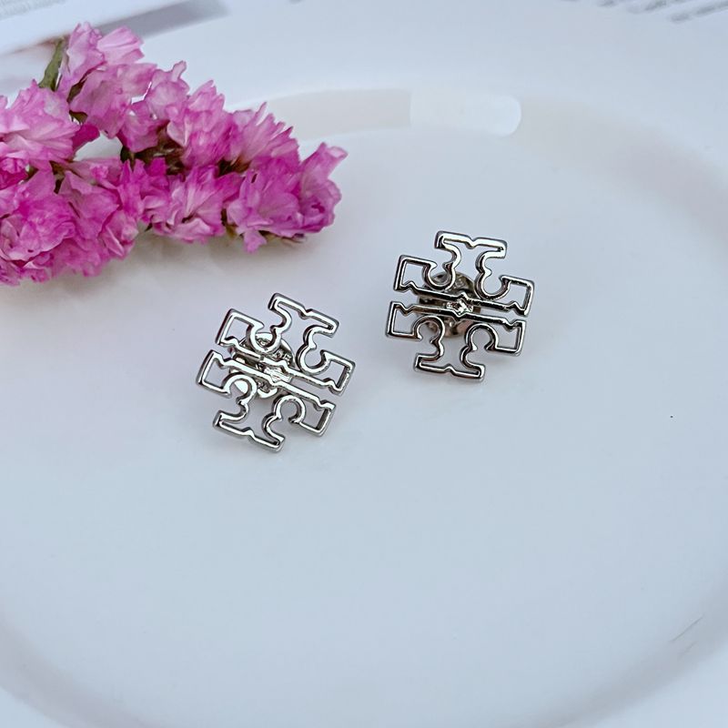 Tory Burch Simple Hollow Logo Metal Stud Earrings